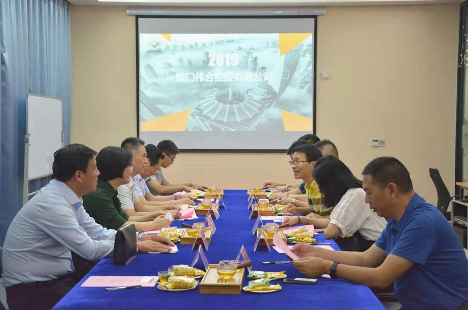 2019年9月9日上午,由盐城市政府办公室副主任张波率团莅临伟合控股有限公司进行考察指导,董事长曾建华先生及董事长助理叶钒先生等热情迎接招待。