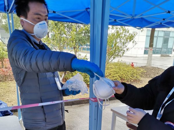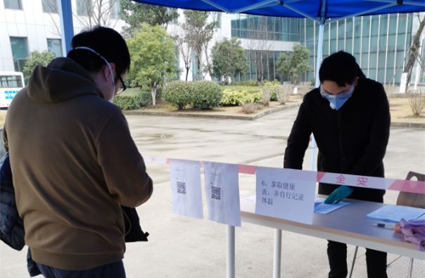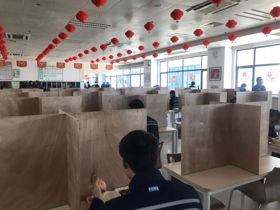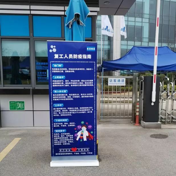 2月12日,经申请核准,通力电梯昆山工业园开始复工。在此之前,通力已经做了大量的准备工作,成立抗击疫情领导小组,针对每个员工进行健康、旅居信息登记,防疫物资准备充分,完善了防疫制度。 复工之后,员工每天都要经过以下“五道关卡”才能进入园区。 第一步:测量体温 凡是进入园区的人员,每个人都要进行体温测试,不得高于37.3℃。 第二步:核对名单 根据人力资源部提供的“许可进入园区人员名单”,由专人一一核对。确保员工是经过部门核实、人力资源部批准的才能进入园区。 第三步:手部消毒 进入园区前,所有人员手部都需用免洗消毒液清洗。同时,通力在工作区域内设置了65处消毒洗手处,以便员工随时消毒。 第四步:领取口罩 口罩是有效防护个人健康的手段,员工每天都可以领取、更换新口罩。在园区内需全程佩戴口罩。 第五步:健康及活动信息追踪 员工需每天书面登记健康状况,以及近期的活动轨迹。并在复工的微信群里,及时公开防疫的最新要求、培训资料、员工的反馈意见等。 除了以上的“五道关卡“之外,园区内部随处可见疫情防护知识宣传、防护措施介绍。我们充分利用现有设施,如广告牌、易拉宝、电视等,做到全方位宣传教育及信息发布。 针对餐厅的防疫,除了每天必要的整体消毒,通力昆山工业园在餐厅布局上也做了调整。撤走了一批桌椅,并强调排队取餐时需保持1米以上的距离,一人一桌,吃饭时不聊天,错峰吃饭。每一批人员就餐结束,桌椅再次消毒。