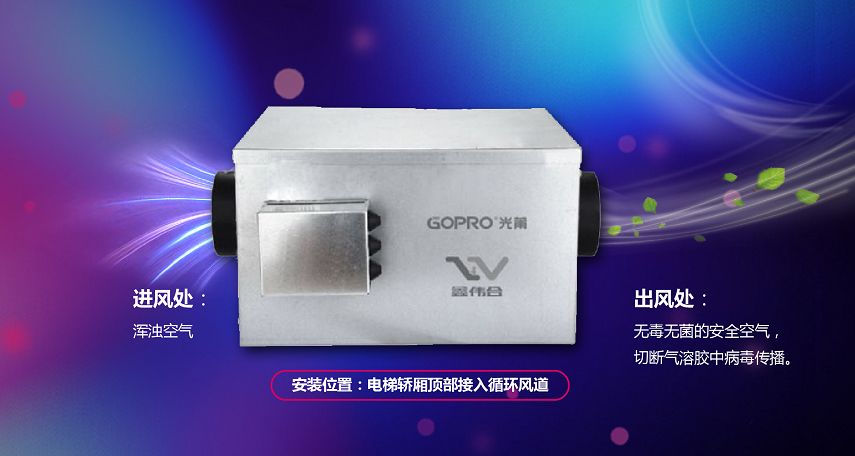 通过电梯轿厢空气交换对流,应对新冠状病毒有快速消杀的紫外线,采用独特的专利设计,实现在人机共处的情况下实时消杀。